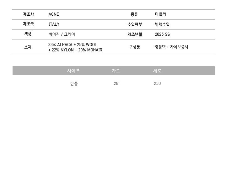 ÃѱæÀÌ 250cm X Æø 28cm