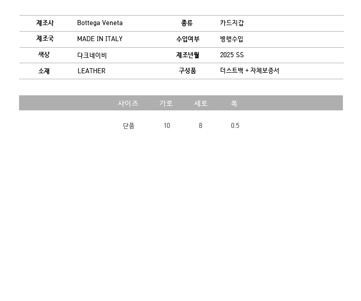 °¡·Î 10cm X ¼¼·Î 8cm X Æø 0.5cm